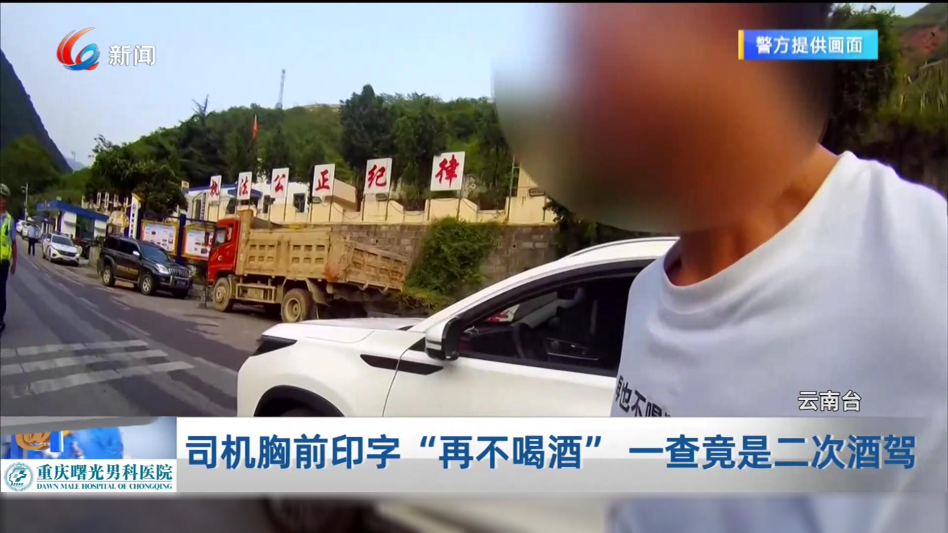 司机胸前印字“再不喝酒” 一查竟是二次酒驾