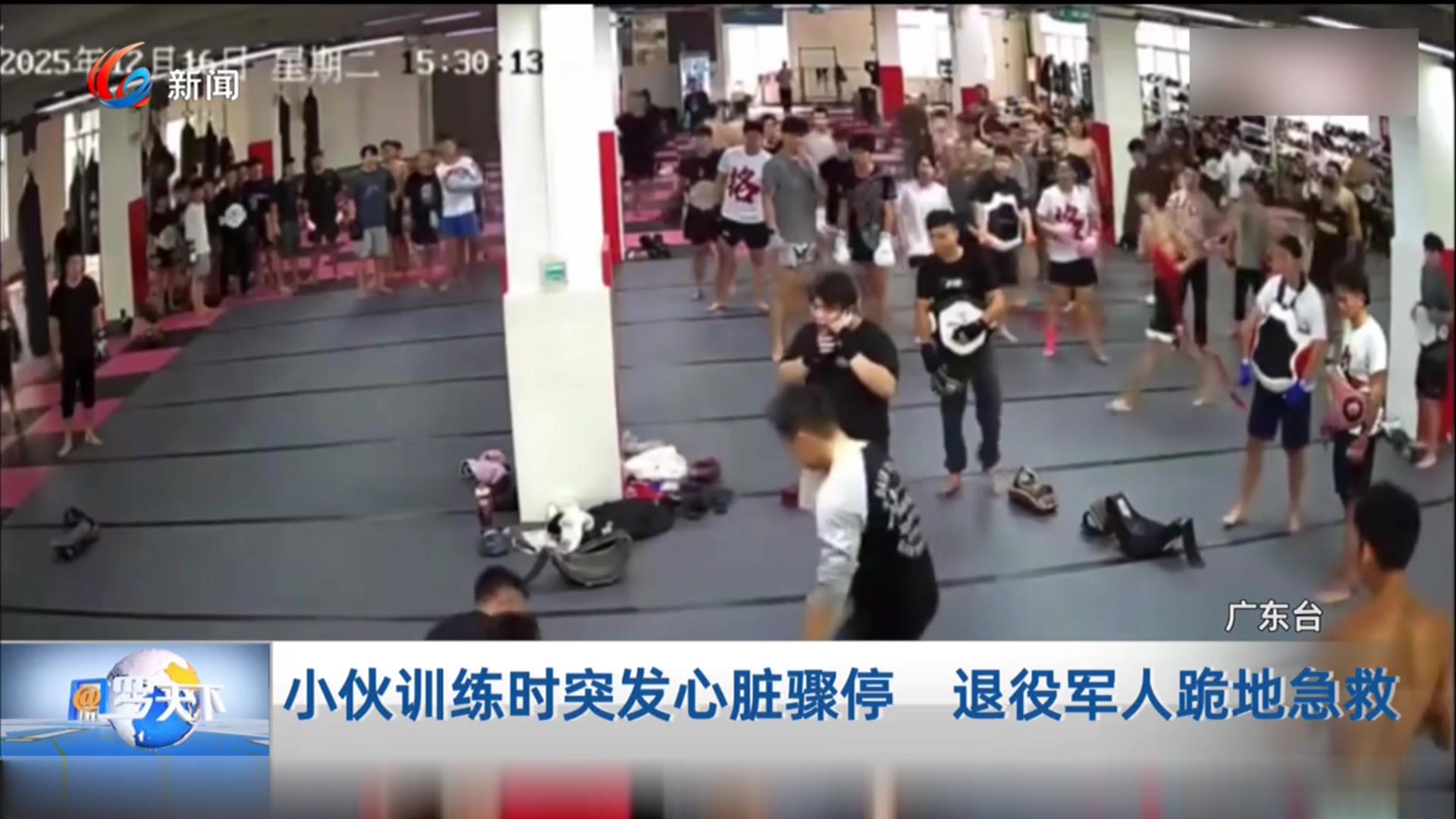 小伙训练时突发心脏骤停 退役军人跪地急救