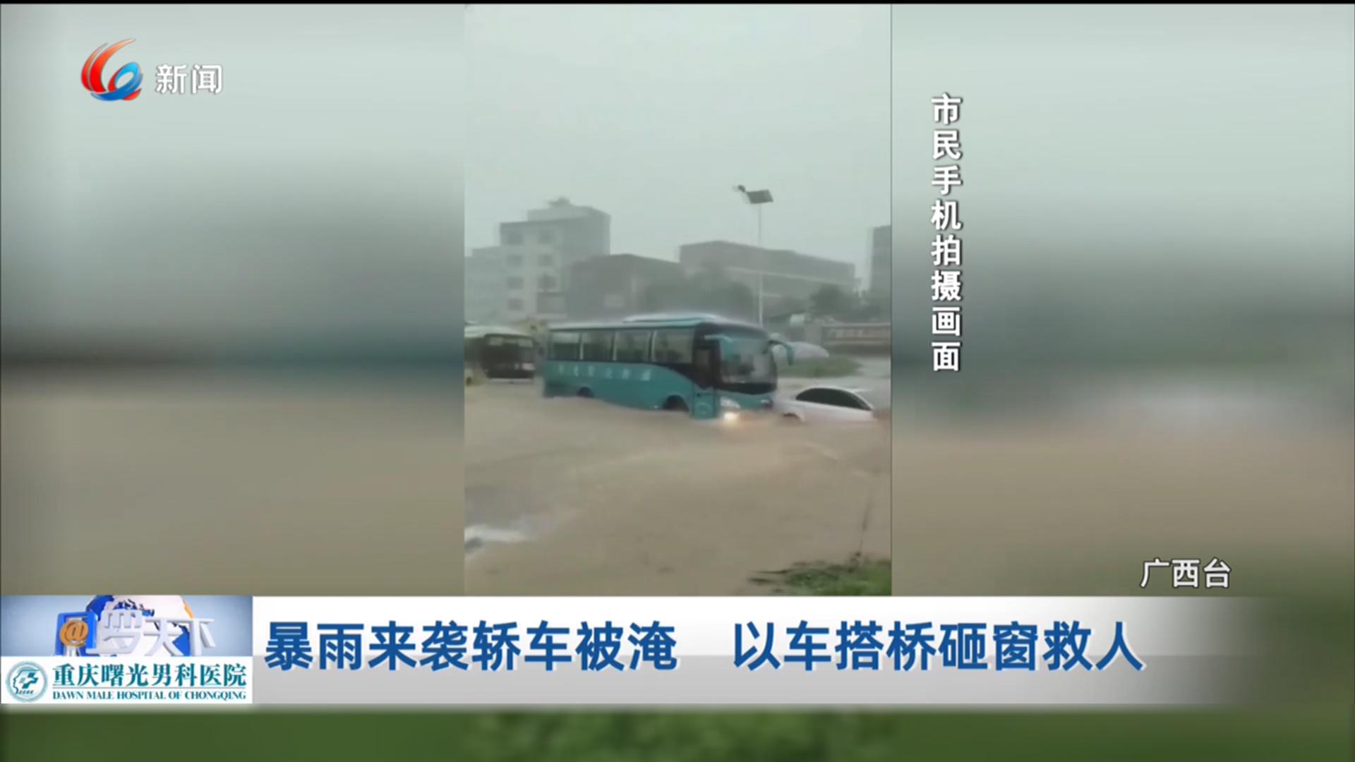 暴雨来袭轿车被淹 以车搭桥砸窗救人