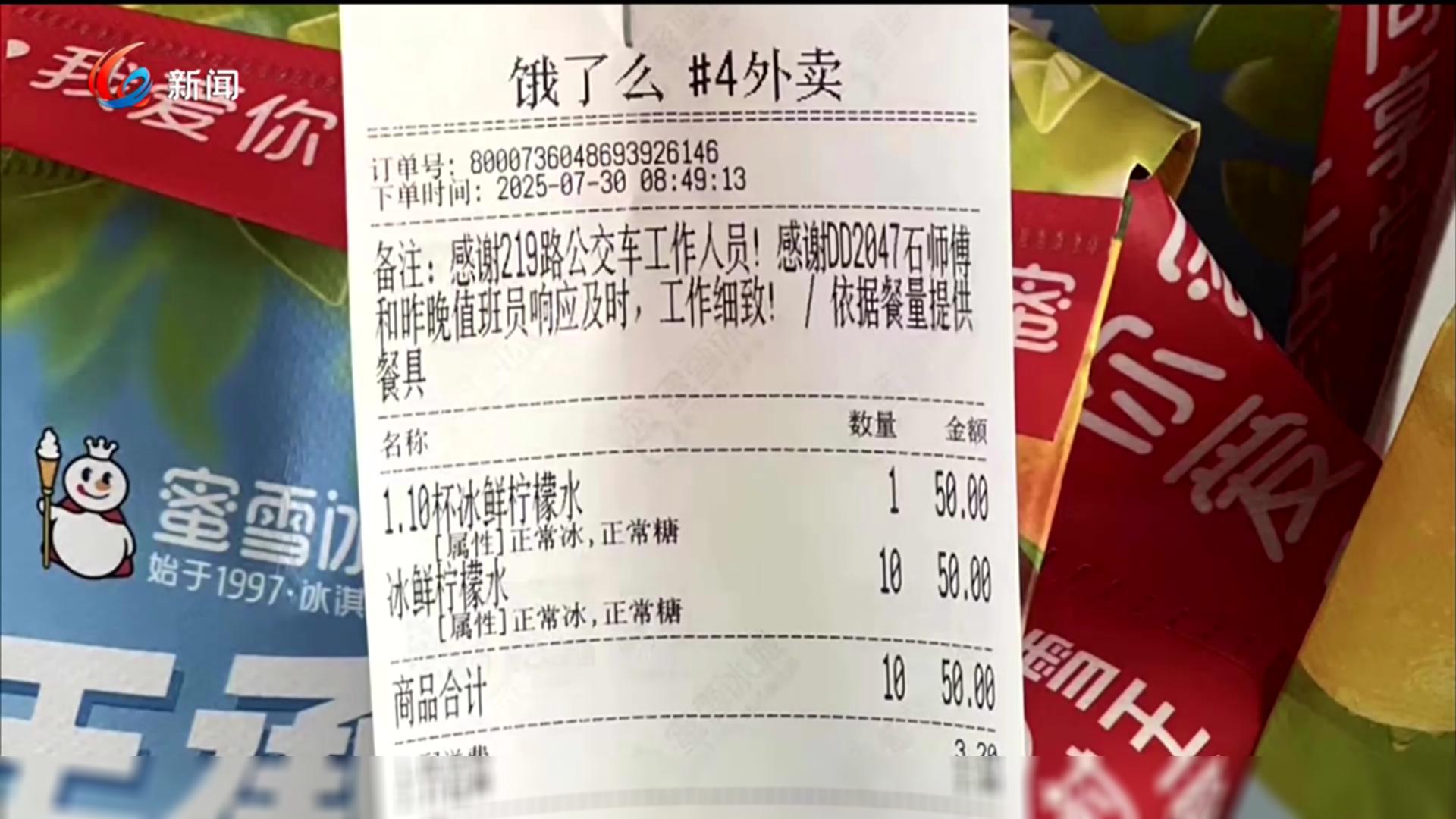 入伏以来,气温居高不下,这对许多基层一线工作者来说是不小的“烤”验。7月30日上午,青岛城运控股公交集团市北巴士第六分公司收到一份特殊的外卖——20杯冰鲜柠檬水,下单人是江苏的廖先生。除了冰镇饮料,外卖单上还有简短留言:“感谢219路公交车工作人员!感谢石师傅和昨晚值班员响应及时,工作细致!”这份夏日清凉的背后,有一个什么样的故事呢?