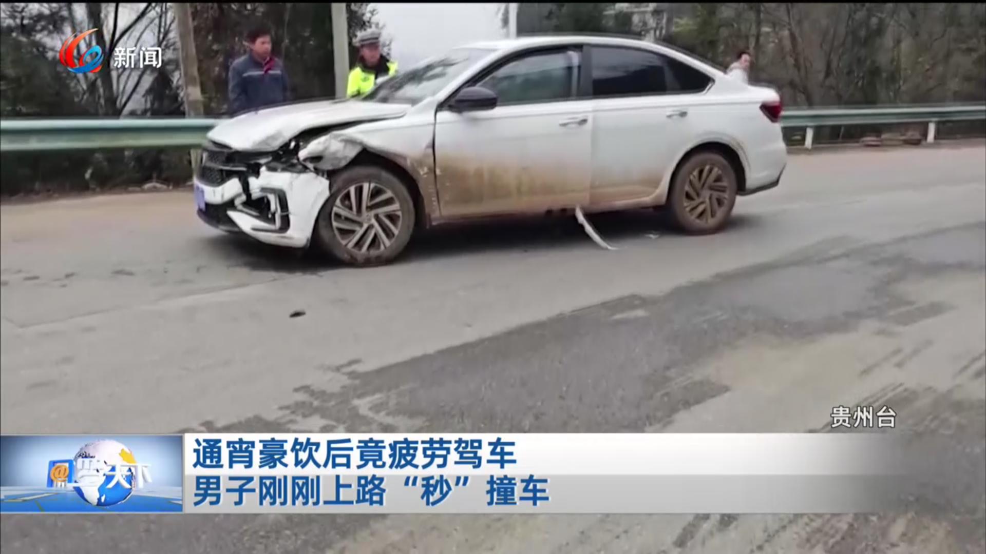 通宵豪饮后竟疲劳驾车 男子刚刚上路“秒”撞车