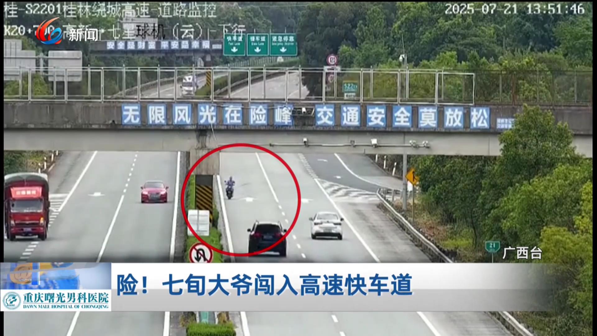 近日,广西桂林绕城高速发生惊险一幕:一名七旬老人骑电动自行车误入快车道,而且还是逆行。当时,公路上来往车流不断,一时间险象环生。