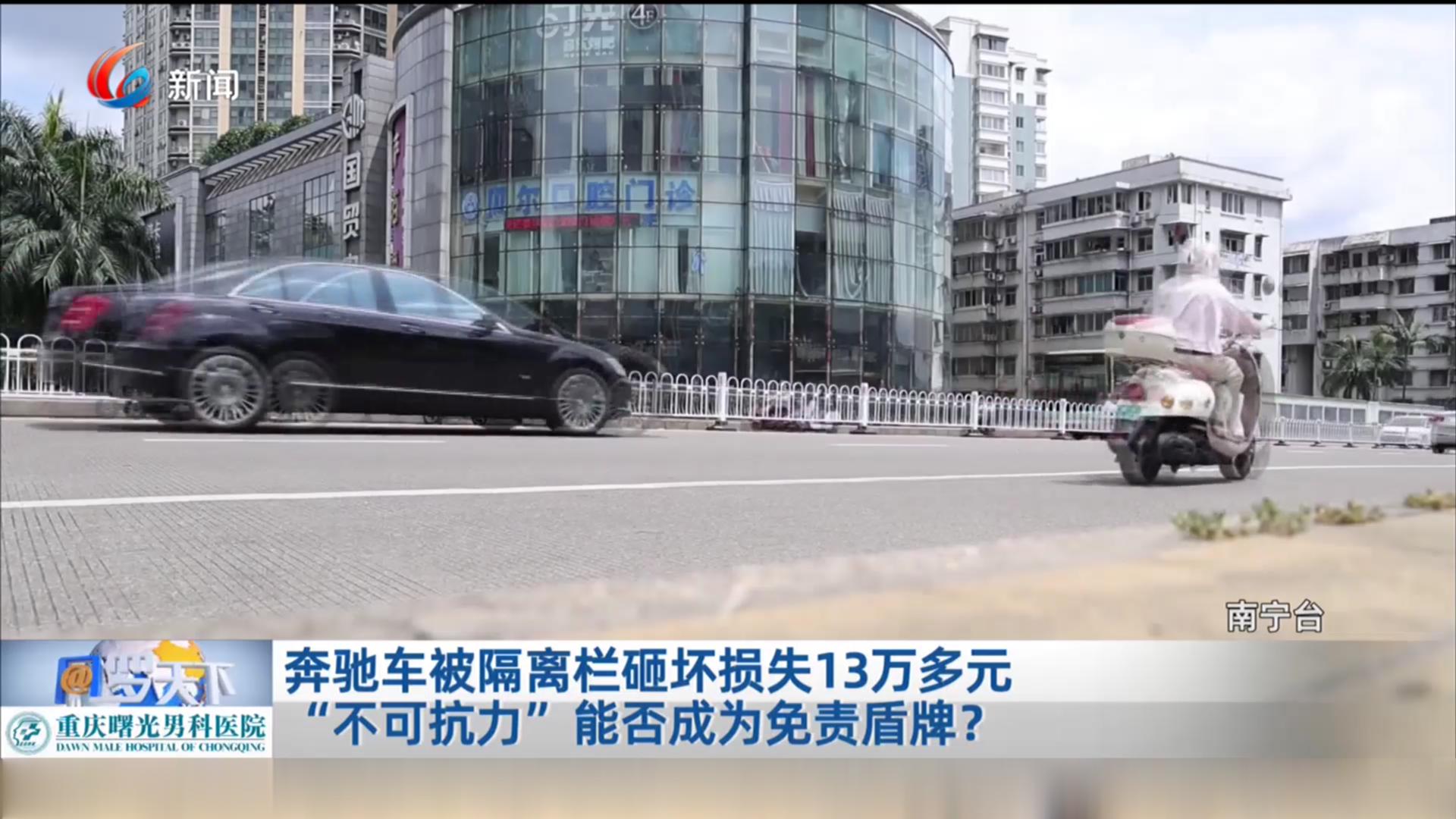 奔驰车被隔离栏砸坏损失13万多元 “不可抗力”能否成为免责盾牌?
