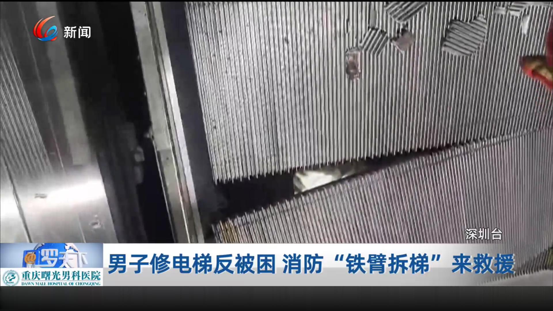 男子修电梯反被困 消防“铁臂拆梯”来救援
