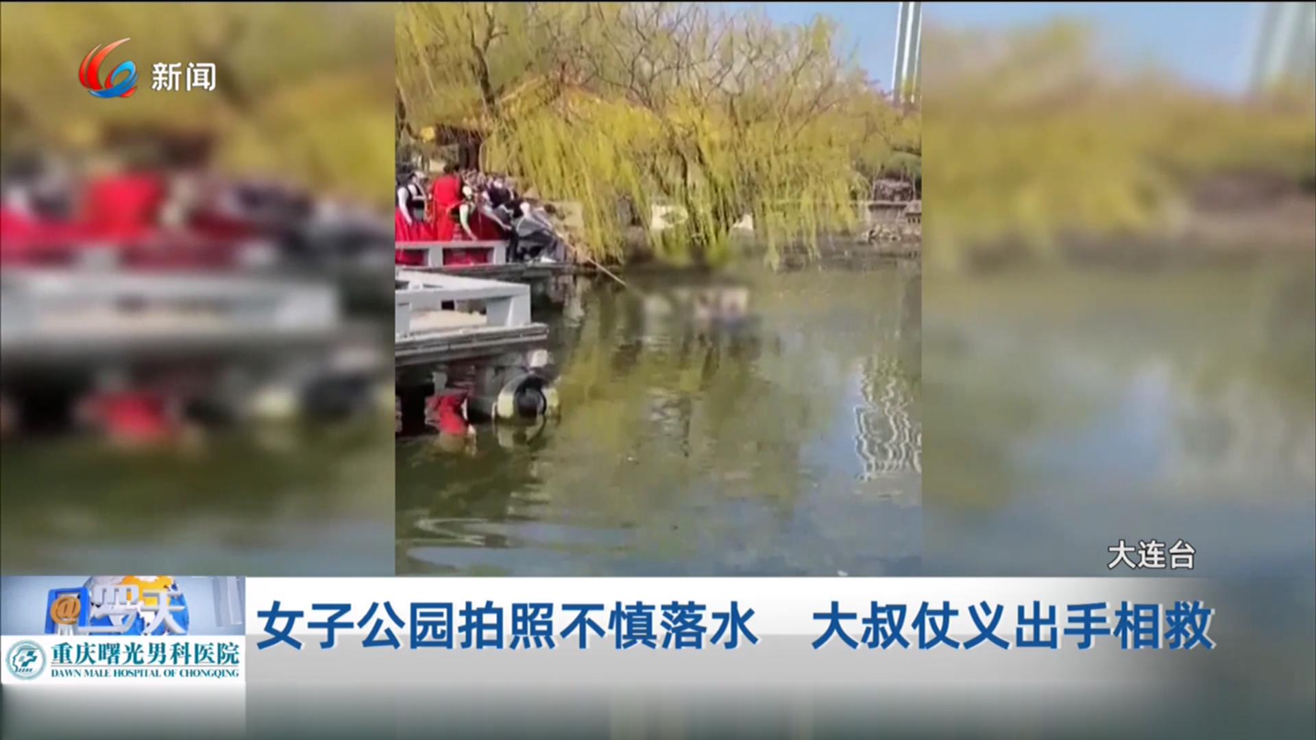 4月11号,在大连劳动公园荷花池,一名女游客意外落水。危急时刻,附近一位大叔立刻跳入水中,并在众人的帮助下,将落水女子救上了岸。