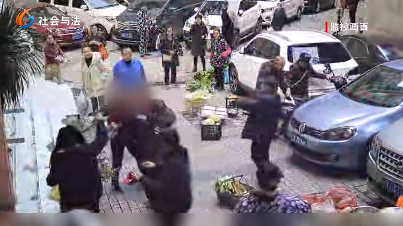 俩摊贩街边卖菜起冲突 当众上演一段“全武行”