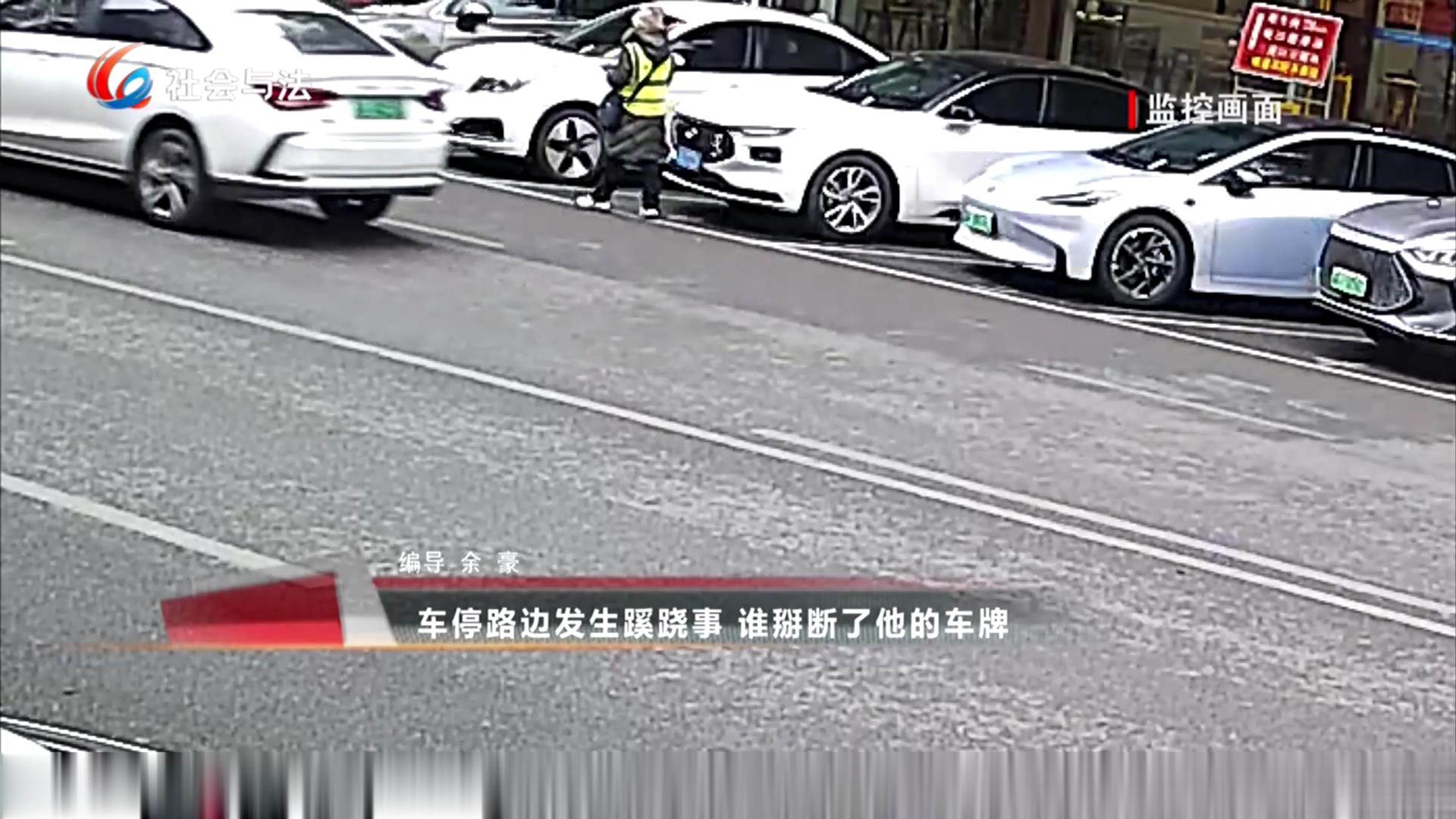 车停路边发生蹊跷事 谁掰断了他的车牌