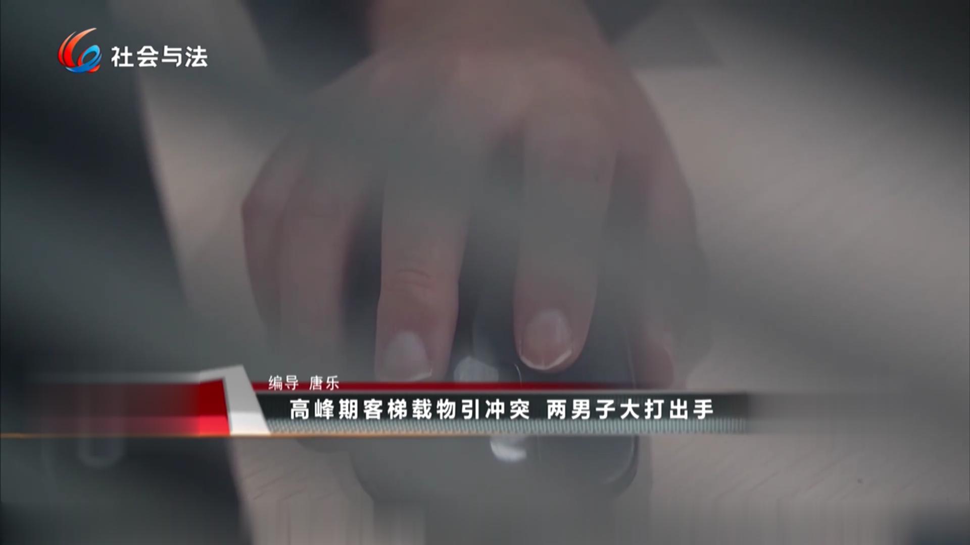 高峰期客梯载物引冲突 两男子大打出手