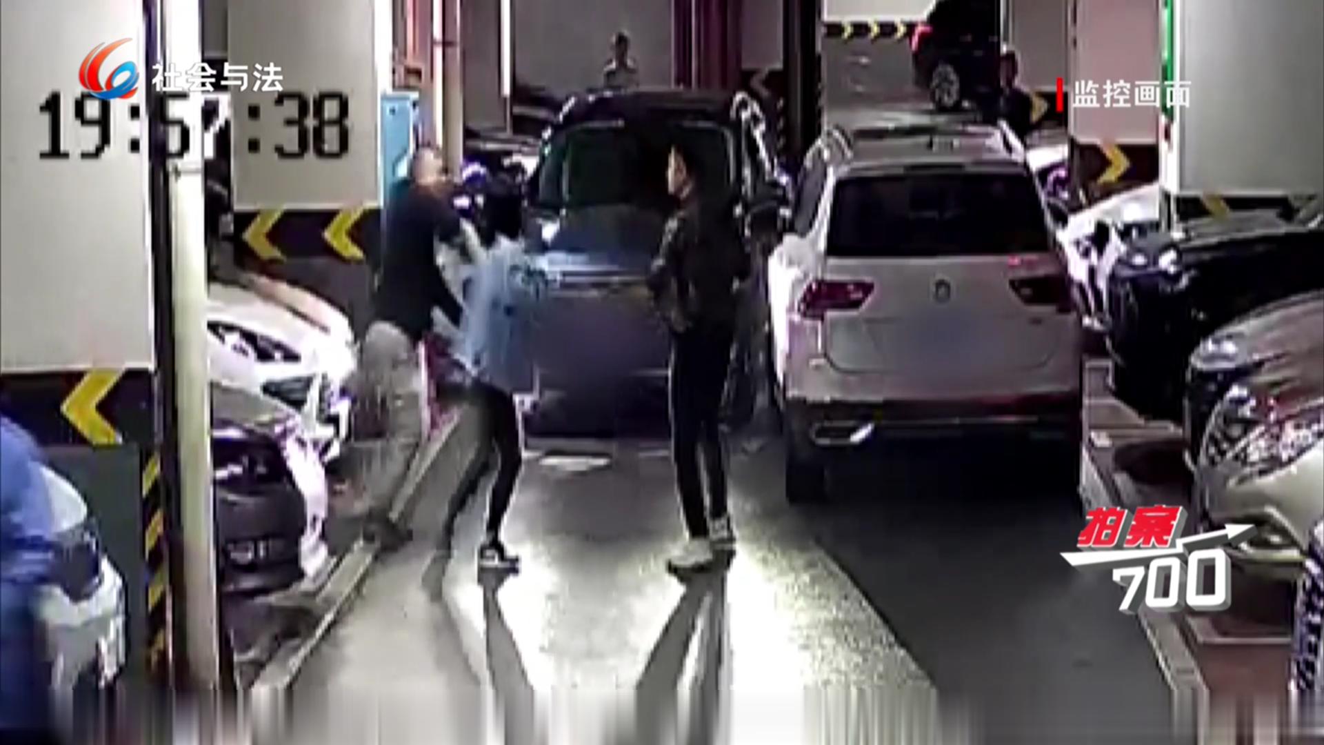 两男子车库会车“斗气” 当众上演“武斗戏”