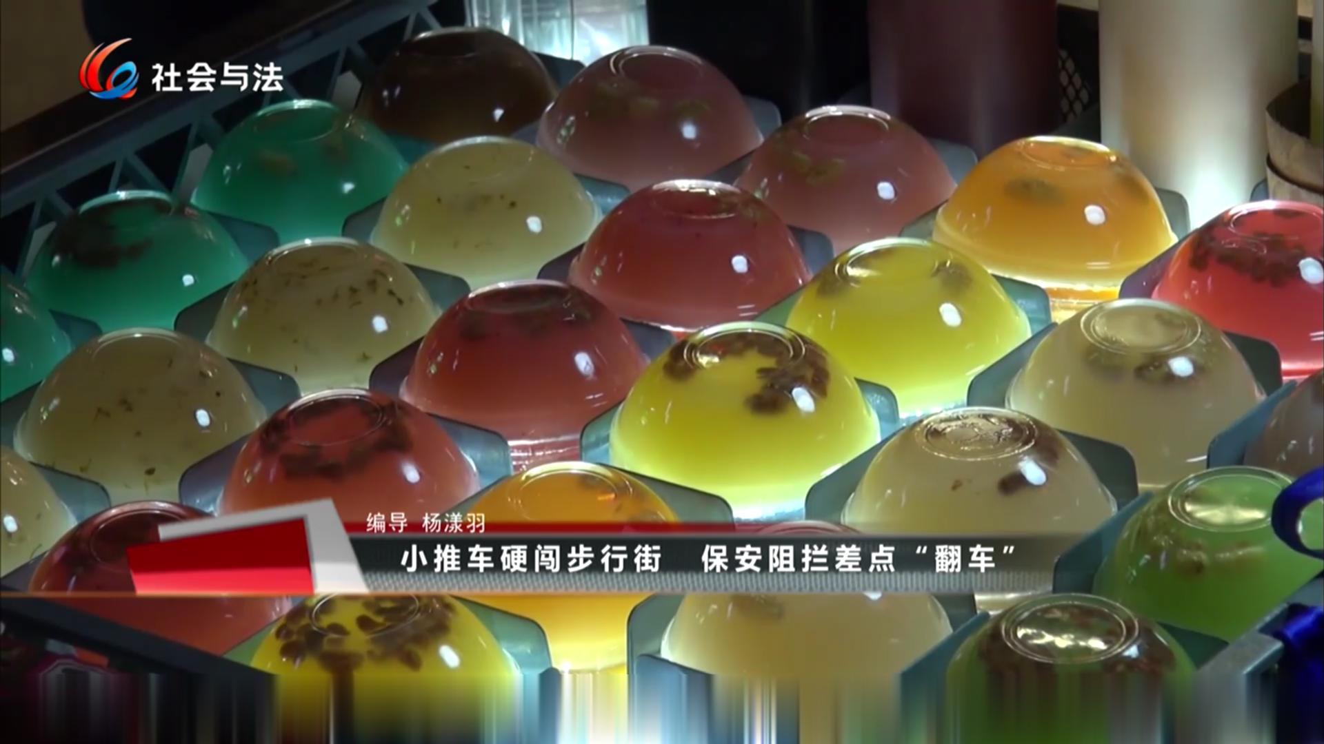 小推车硬闯步行街 保安阻拦差点“翻车”
