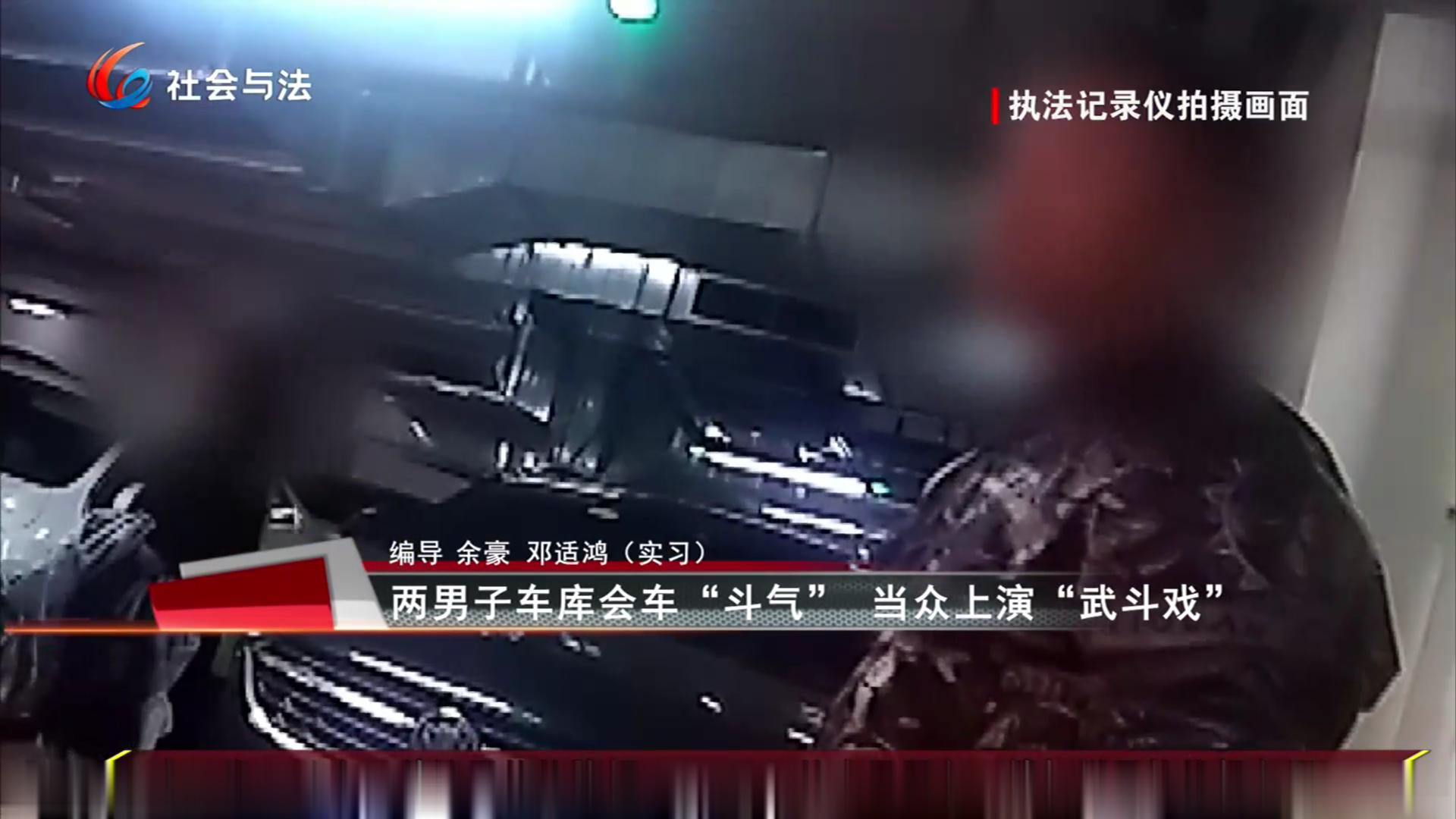 两男子车库会车“斗气” 当众上演“武斗戏”
