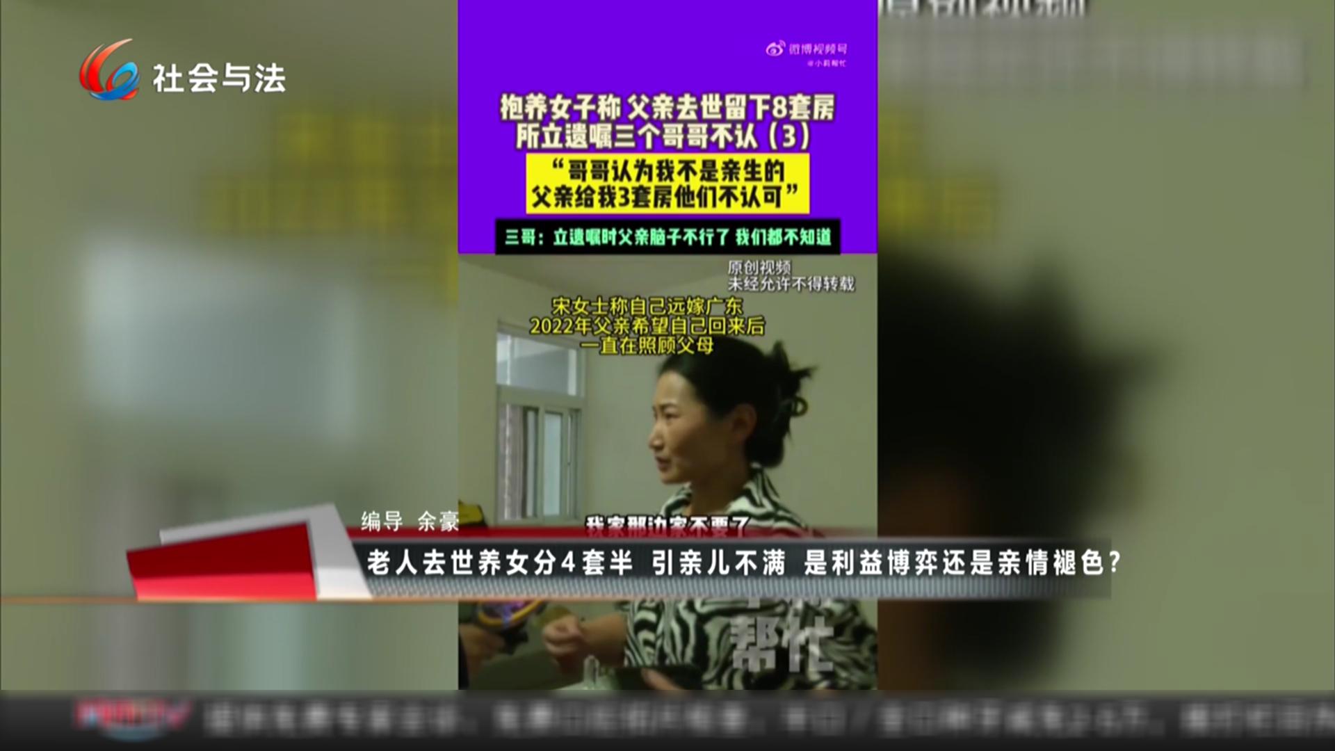 老人去世养女分4套半 引亲儿不满 是利益博弈还是亲情褪色?