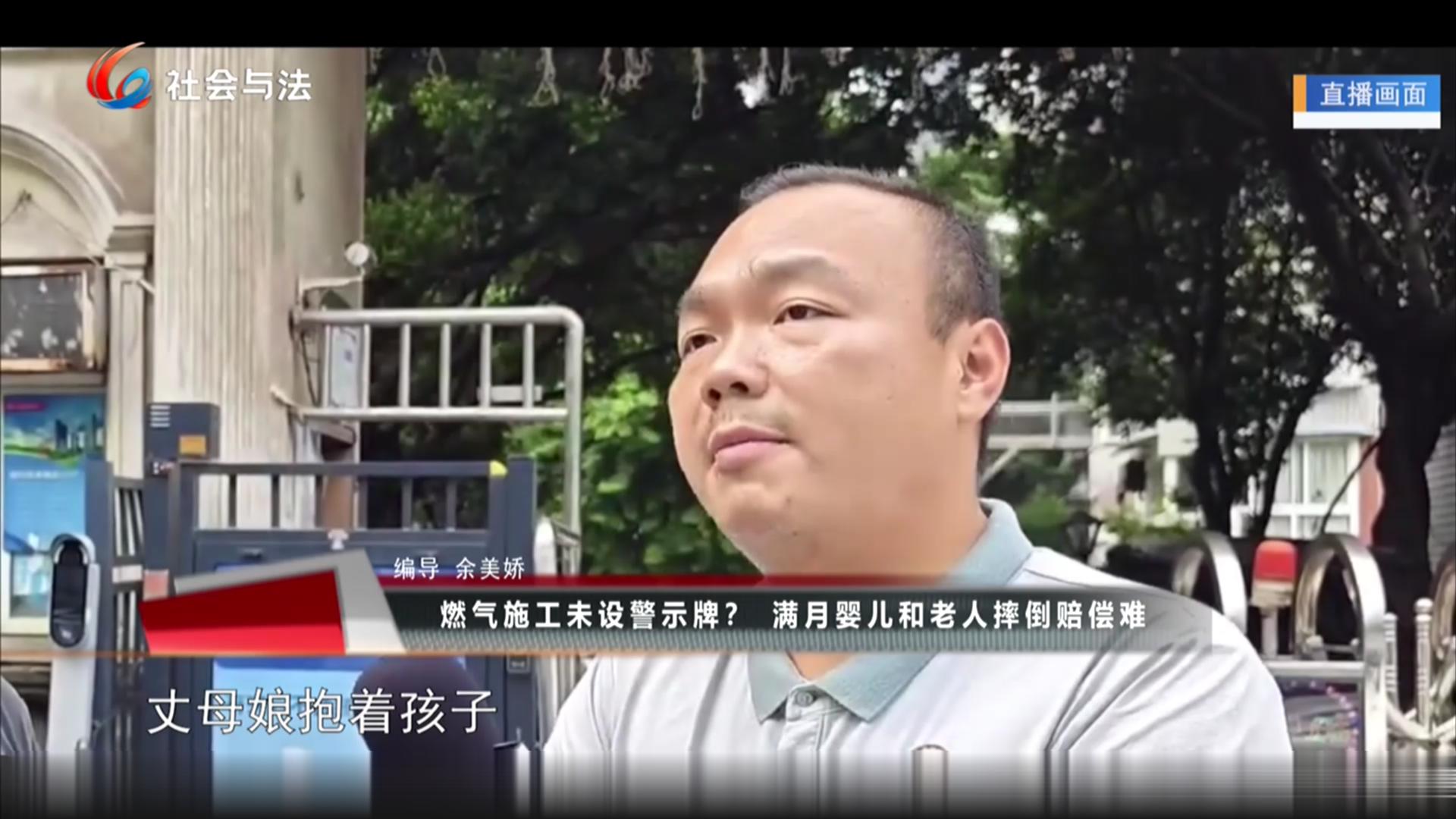 燃气施工未设警示牌? 满月婴儿和老人摔倒赔偿难