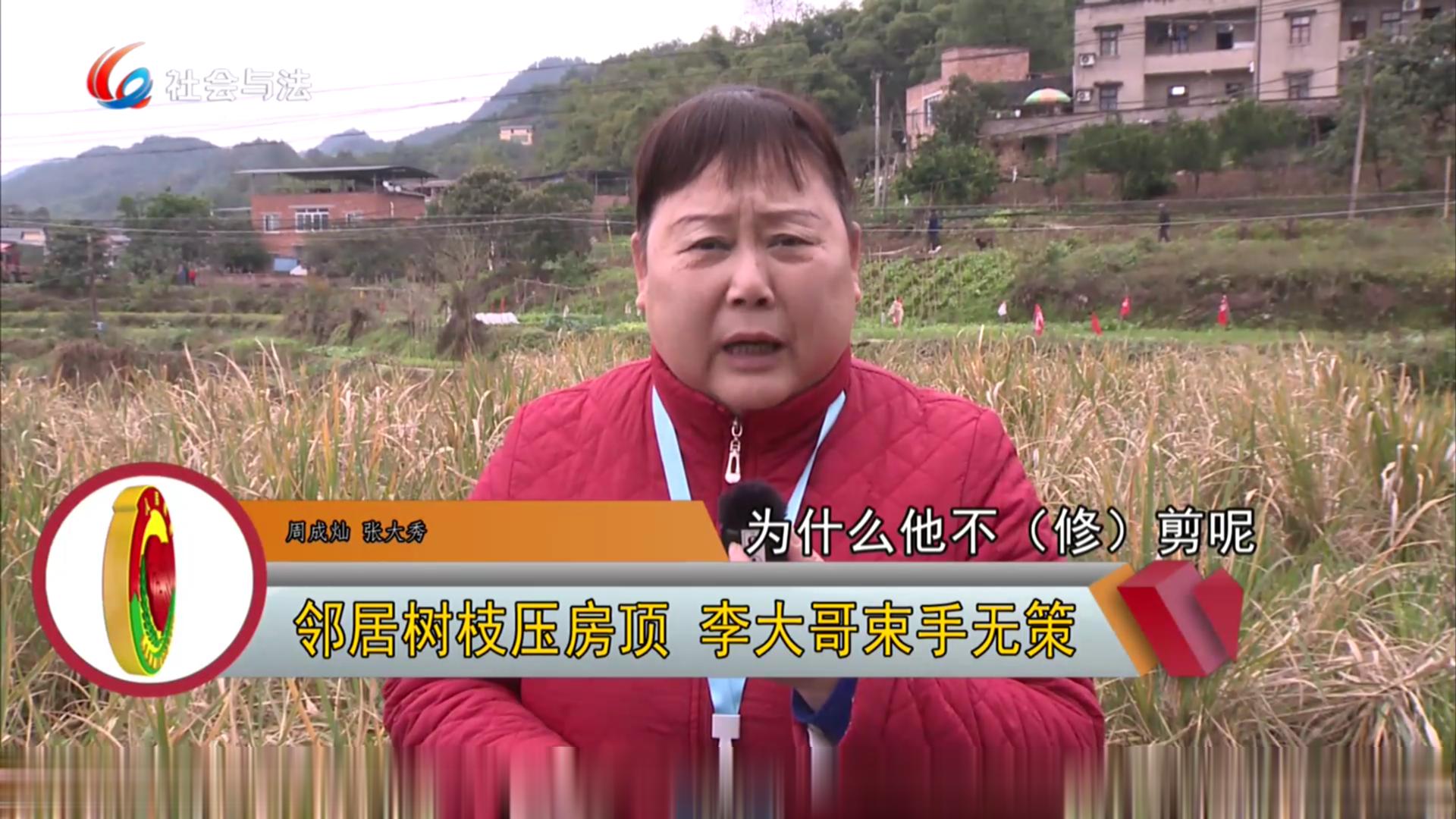 邻居树枝压房顶 李大哥束手无策