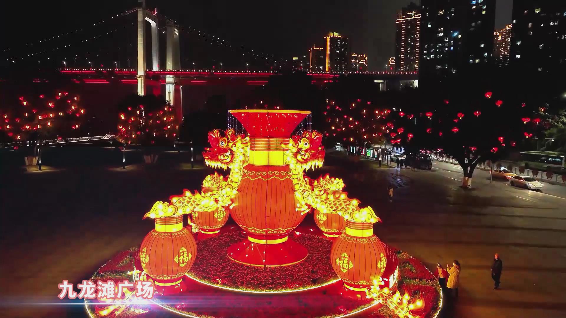 随着春节脚步的临近,九龙坡区各重要节点在新春灯饰的装扮下,变得流光溢彩、年味十足。各种充满九龙坡元素的灯饰,以及吉祥喜庆的灯笼挂满枝头。轻轨列车从城市地标“九龙门”上方呼啸而过,形成一道独具山城特色的风景。今年九龙坡区的迎春灯饰结合龙年新春元素,以红、黄、金色为基调,对杨家坪商圈、直港大道、九龙滩广场、龙腾大道等重要区域、节点进行美化,打造九龙特色旅游名片,激发夜经济消费活力。