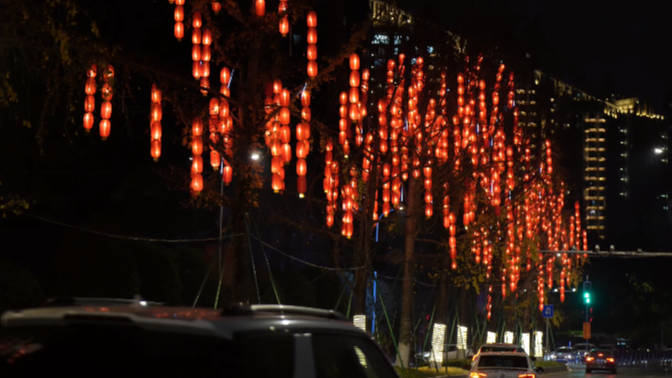 随着新年脚步的临近,九龙坡区重点道路、街头已经“挂满”年味。