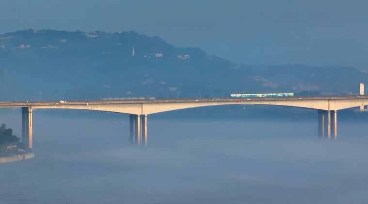 近两天,忠县城区晨雾弥漫,一幢幢建筑、大桥在缥缈的云海中忽隐忽现,犹如“天空之城”。