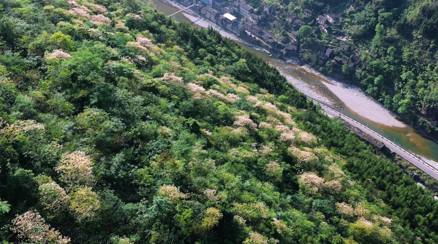 “春雨如毛又似埃,云开还合合还开。怪来春晩寒如许,无赖桐花领取来。”眼下,正是桐花绽放的时节。在刚刚上榜 “全国十大最美农村路”的白武沿线,旖旎绽放的桐花,为叠翠的青山撒了一层薄薄的“糖霜”。