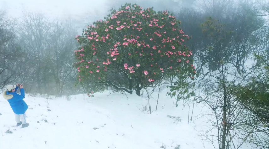 一场突如其来的春雪,渐隐了红池坝景区刚刚萌显的春意,万亩杜鹃吐芽挂蕾,傲雪开放,分外美丽。