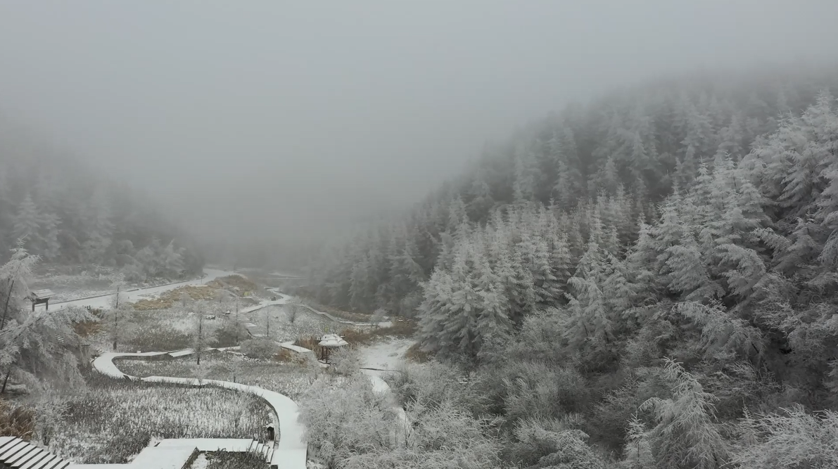 受此次寒潮天气影响,从26日凌晨3点开始,在重庆渝北的华蓥山迎来了降雪,山上一片银装素裹。