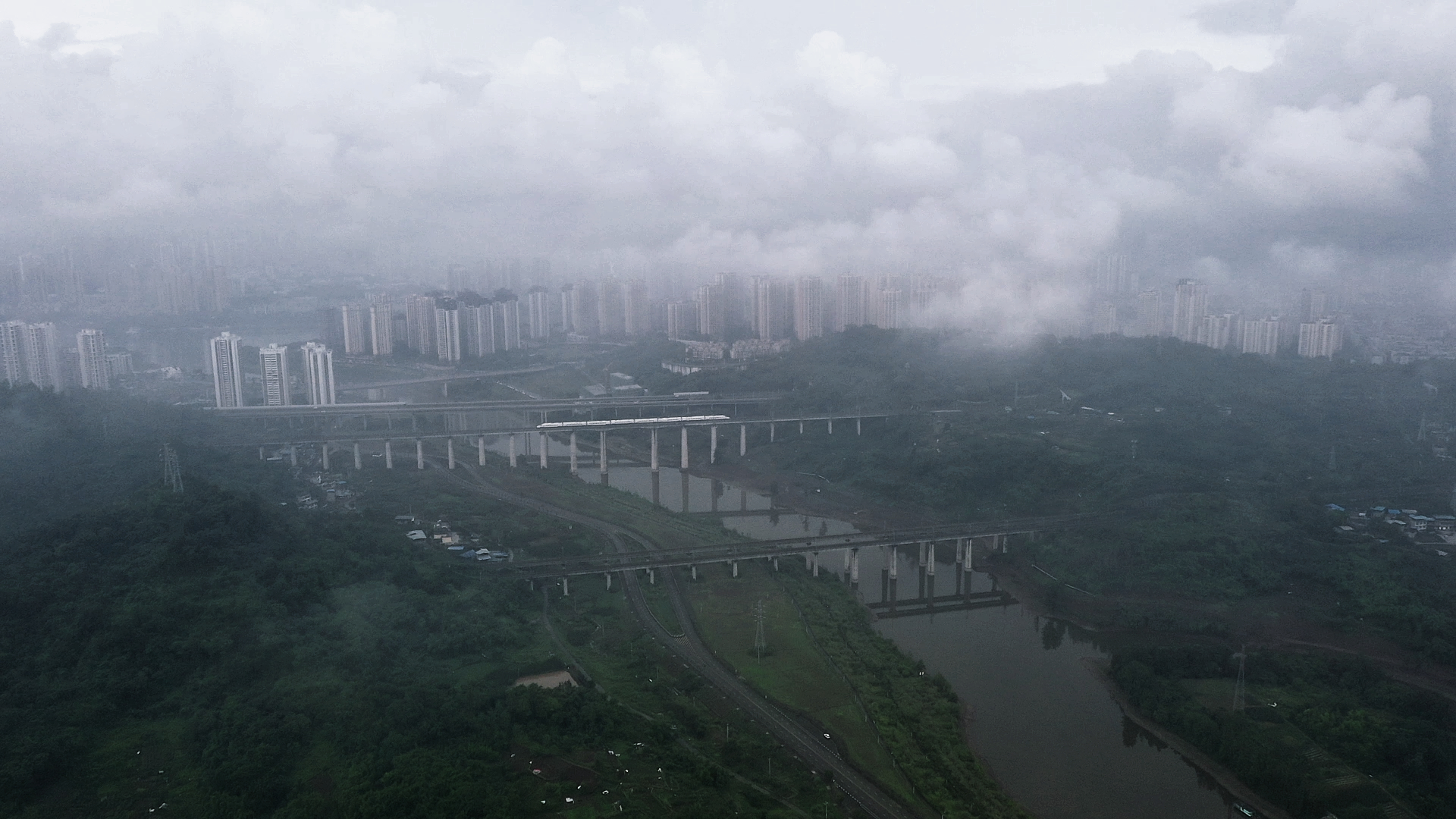 清晨,重庆市合川区在云雾中醒来,若隐若现,宛如一幅淡雅的水墨画,诗意与宁静在这画卷中悄然流淌。