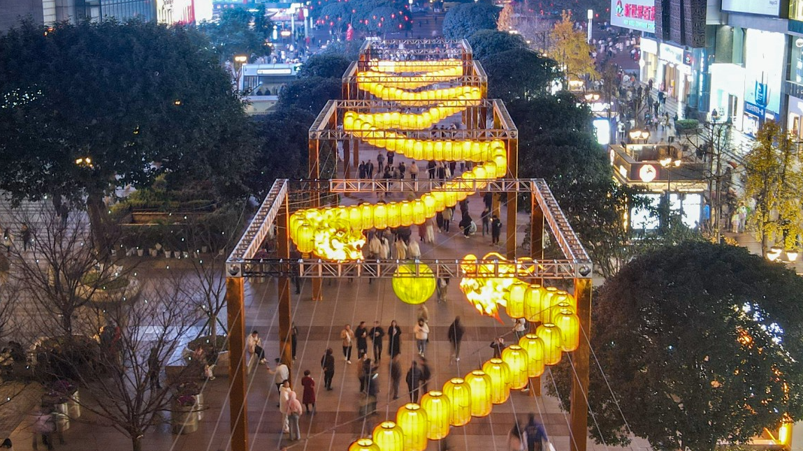 到观音桥看“双龙戏珠” 商圈新年灯饰亮灯