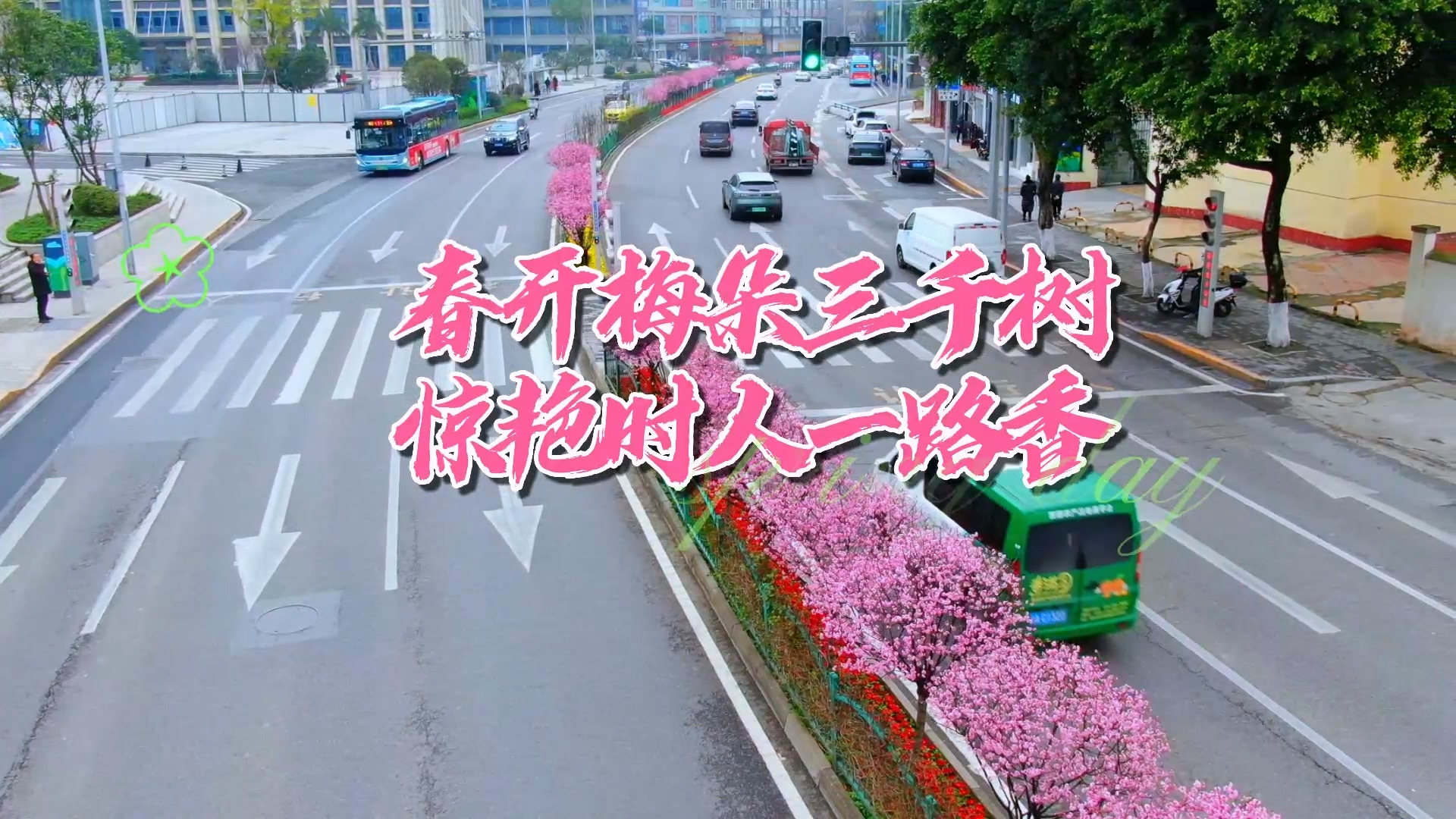 近日,万州城区的红梅花竞相绽放,为城市增添了浓浓春意。