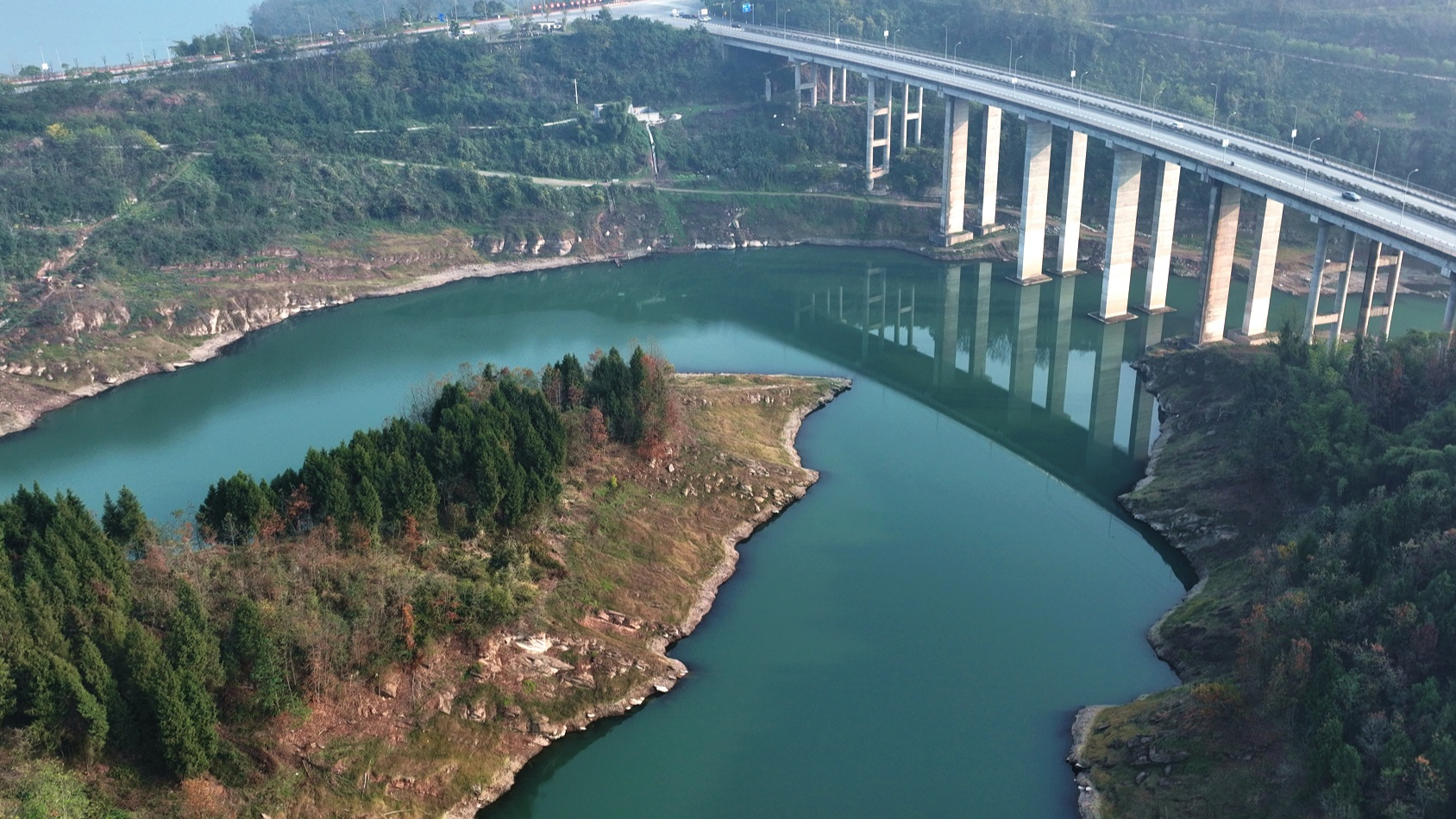 曹溪河位于忠县城郊的九蟒社区境内,是长江忠县段的一条支流,沿途河岔交错、绵延曲折。冬季,随着三峡水库蓄水,河道变宽,河面水平如镜。两岸树木色彩斑斓,流域内桥岛相连,好一幅绝美的山水画卷。