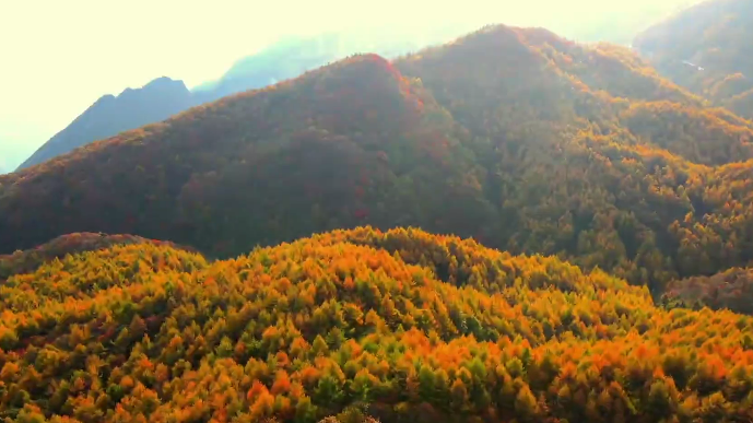 深秋时节,重庆巫山梨子坪森林公园秋色正浓,万亩落叶松层林尽染,呈现出一派色彩斑斓的壮丽景象。