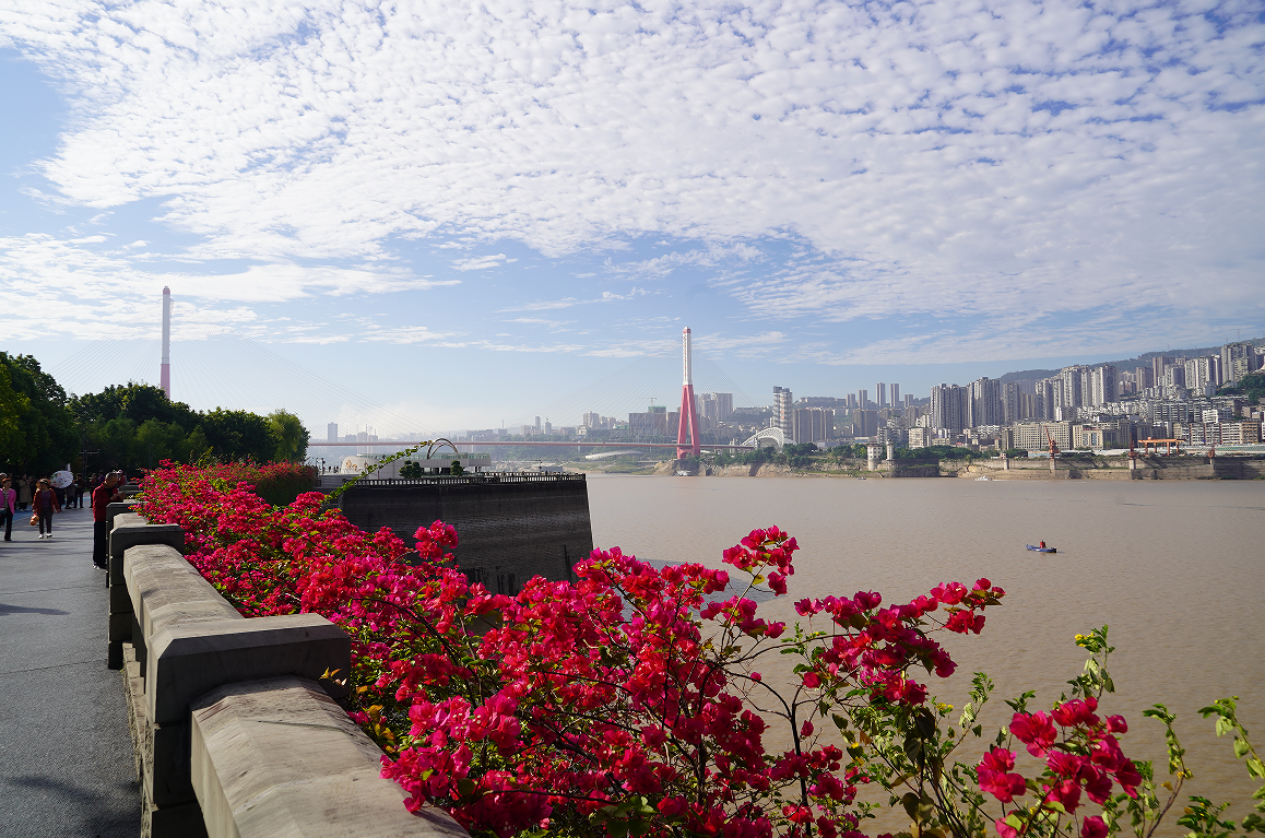 金秋时节,万州区滨江一带,100万株三角梅正在热烈开放。红红火火的三角梅恰似为十公里环湖戴上了一个美丽的花环,成为市民的热门打卡地。