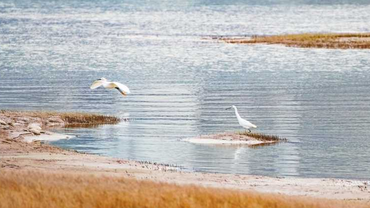 3月5日,春光明媚,长江江面碧波荡漾,长江大桥下珊瑚坝的滩涂上,草木蔓发。一群野生白鹭和几只野鸭聚集在浅滩边,时而在水面嬉戏,时而漫步浅滩专心捕食,成为一道亮丽风景。远处,几名摄影爱好者安静地端着相机,记录下这群“进城”“野鸟”的美妙瞬间。