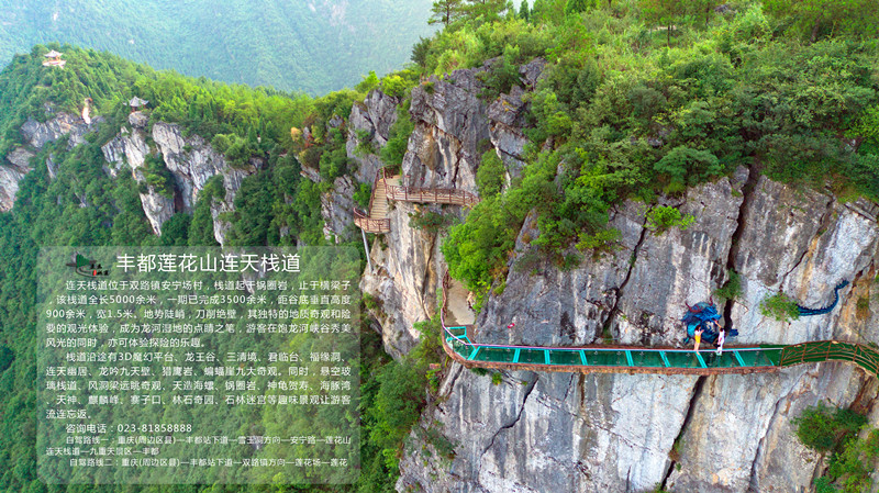 九重天景区位于丰都县双路镇莲花山。平均海拔1100米,年均气温23度,森林覆盖率达80%,植被良好、水源充沛,负氧离子丰富,是康养、避暑、探险和揽胜的绝佳之地。九重天景区定位为重庆康养胜地和重庆乡村旅游样板。