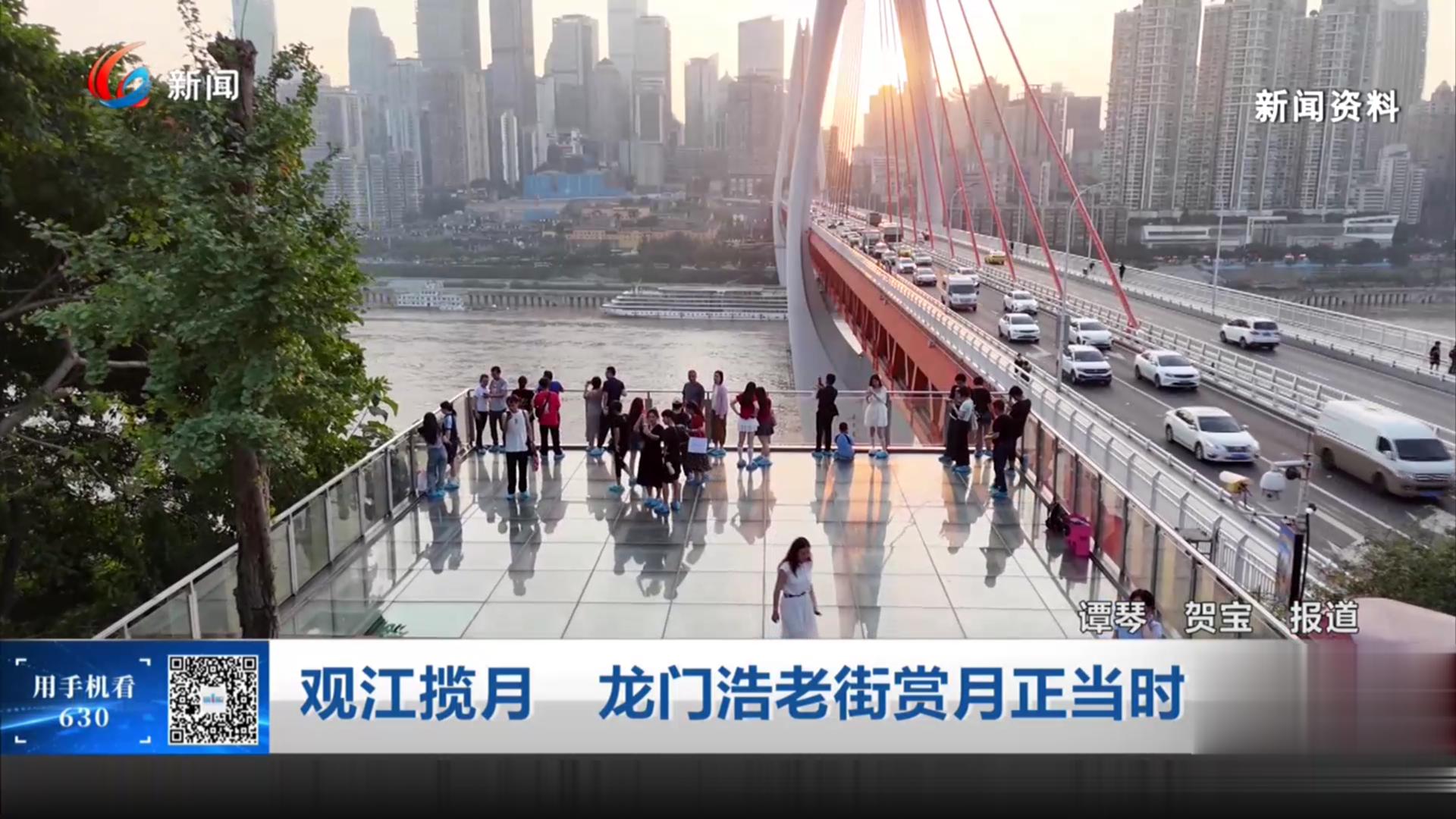 中秋佳节,赏月必不可少。在弹子石,大家不仅可以欣赏着两江四岸的炫丽夜景,还能在城市观景台,沉浸式感受金桂秘境和月影星河。前来打卡的游客络绎不绝。