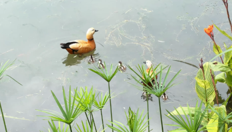 大渡口公园又添“萌宝” “长枪短炮”围观赤麻鸭“遛娃”