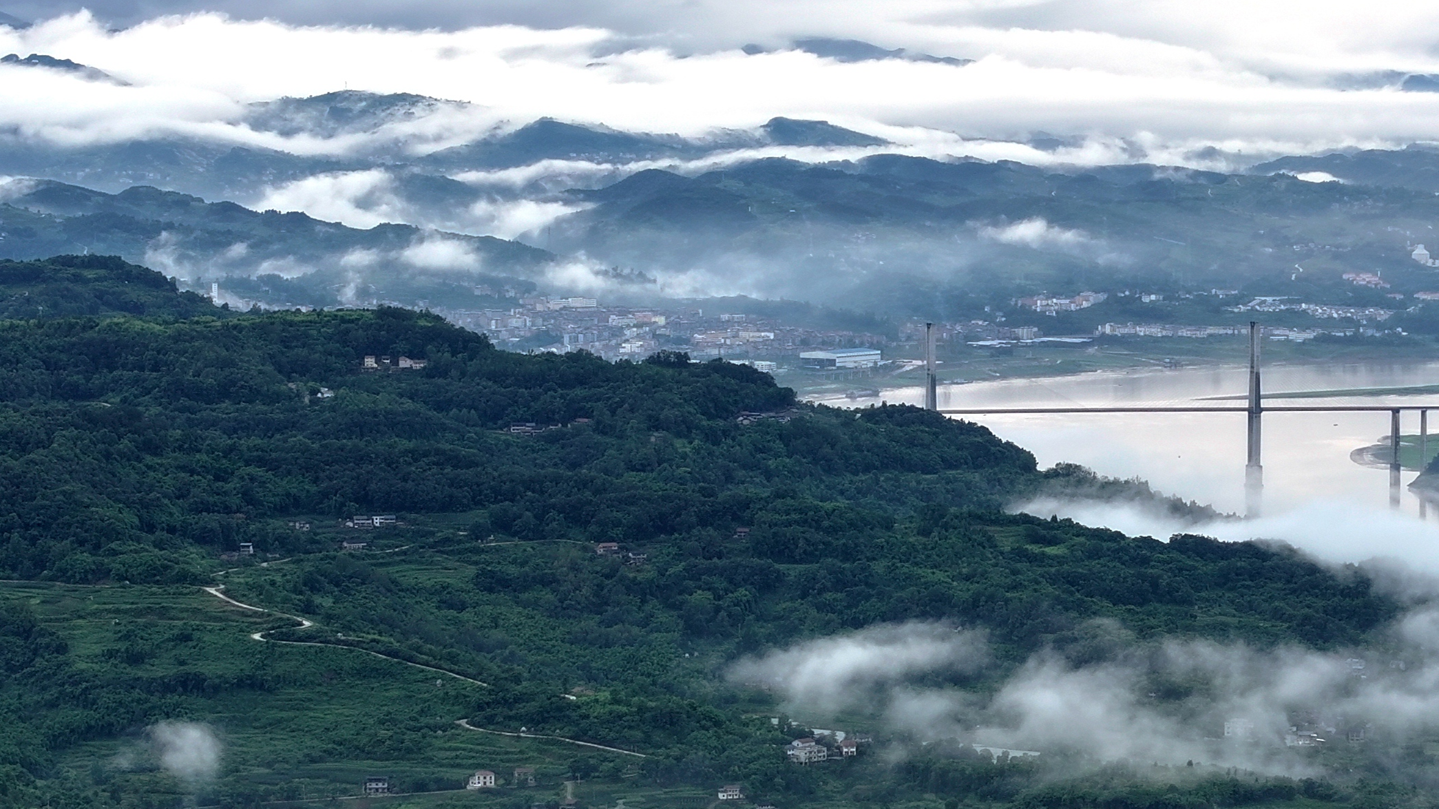 雨后初霁 忠县出现大范围平流雾景观 6月22日,雨过天晴的长江忠县段出现大范围平流雾景观,缥缈的平流雾缭绕山河之间,如梦如幻,宛若仙境。