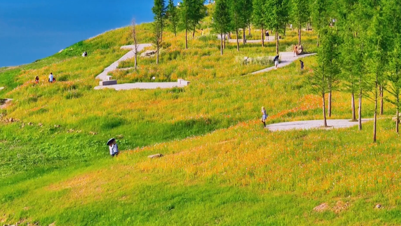 这段时间,万州区滨江消落带上的白鹭湾成了花的海洋,成为市民的热门打卡点。