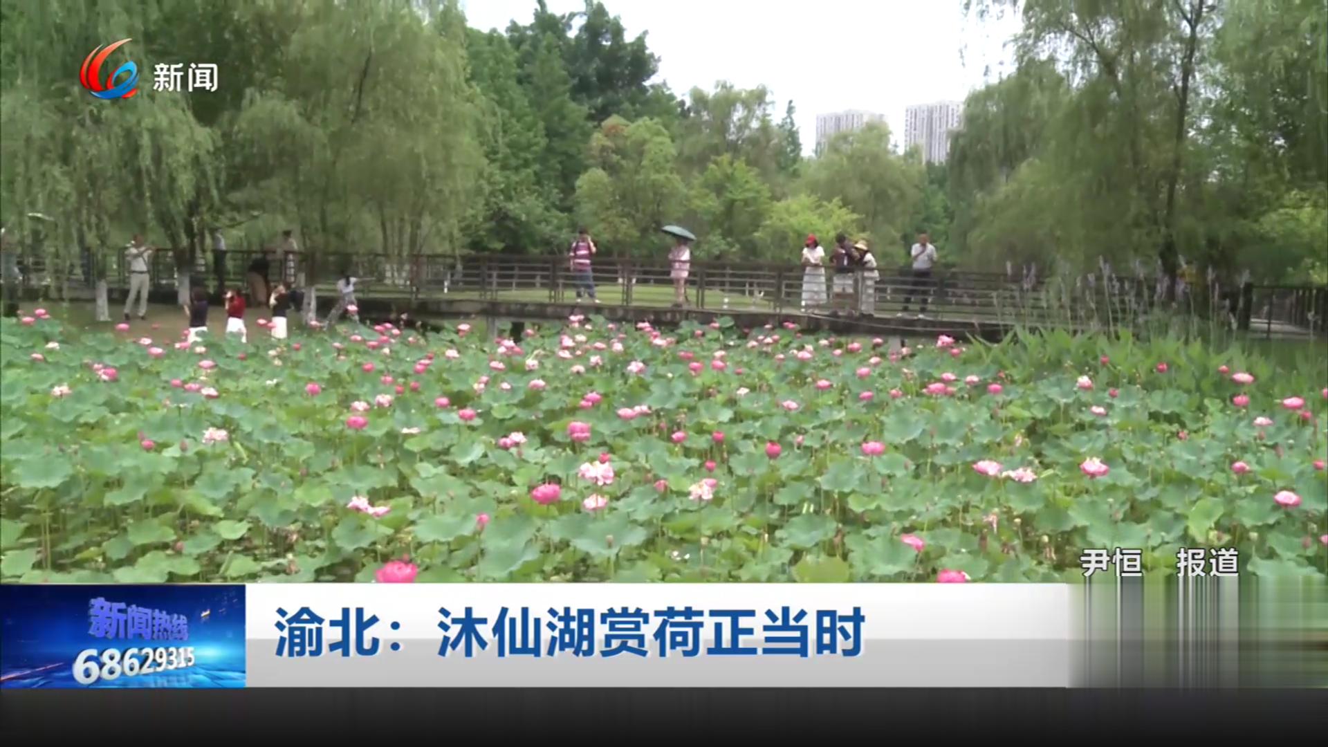 渝北区沐仙湖湿地公园盛开的荷花,吸引了许多市民前去打卡。