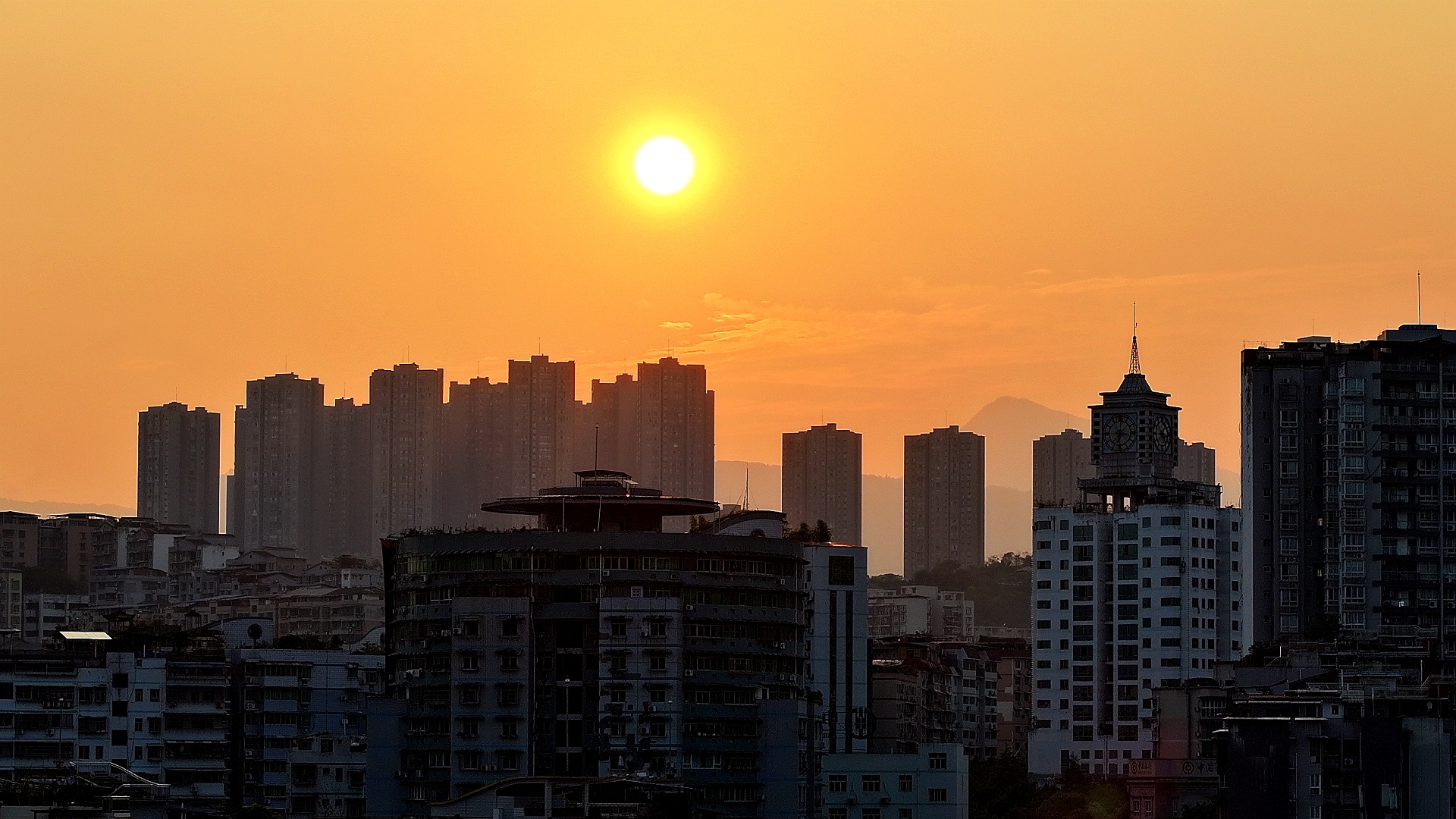 9月24日傍晚时分,红日西斜,桥梁、忠县城区、远山,沐浴在金灿灿的夕阳之中,好一幅落日熔金的壮美画卷。