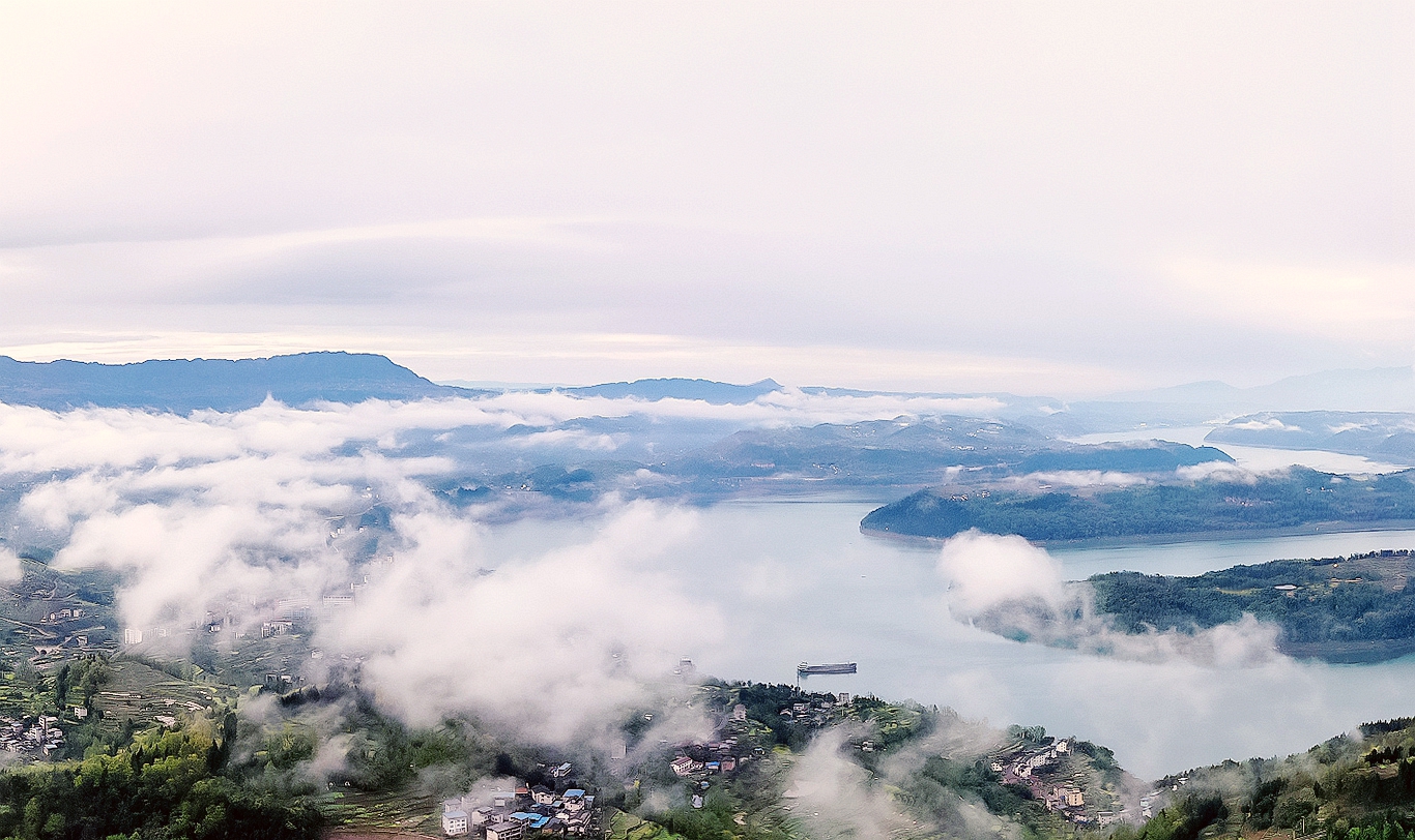 清晨,重庆市合川区在云雾中醒来,若隐若现,宛如一幅淡雅的水墨画,诗意与宁静在这画卷中悄然流淌。