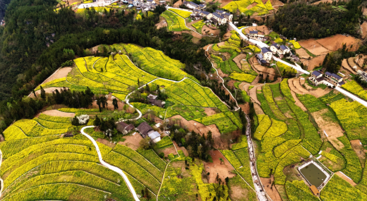 近日,在城口高燕镇西沟村一大片五彩油菜竞相绽放,空中俯瞰,油菜花绵延不绝,似花毯,又似锦缎,形成一幅迷人的乡村田园画卷。