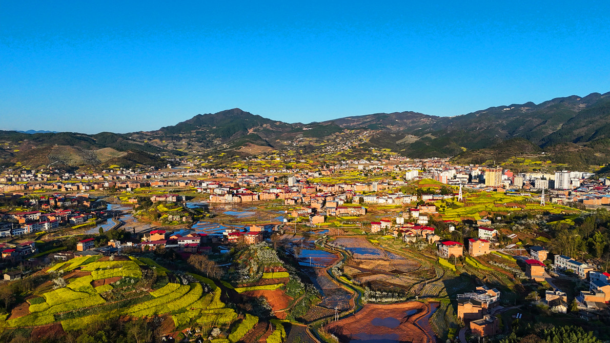 在綦江区打通镇吹角村,连片的水稻田蓄满了水,为移栽秧苗做足准备。放眼望去,纵横交错的稻田与村落、山野交相辉映,构成一幅迷人的春日田园画卷。