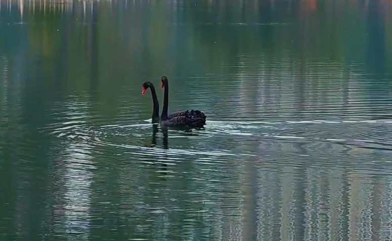 春水初生,颈项柔美细长的黑天鹅在大渡口公园湖面上翩跹起舞、嬉戏觅食,是那么惬意、优雅。