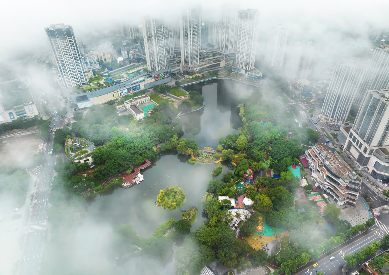 深秋的清晨,藏在闹市中的大渡口公园,雾气袅绕宛若仙境,格外灵动。天接云涛,雾气涌动,整个城市仿佛加了一层特效,楼宇若隐若现,藏匿于云海当中,朦胧中别有一番韵味。