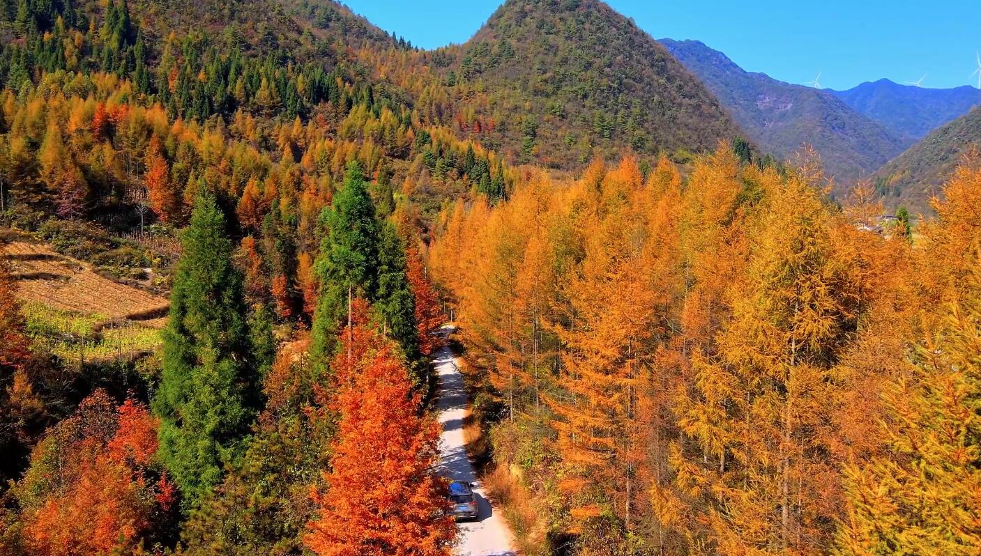 在石柱县龙潭乡,阳光洒满田野,金色、红色、绿色的枝叶交相辉映,田野与村庄相互映衬,构成一幅秀美的乡村画卷。