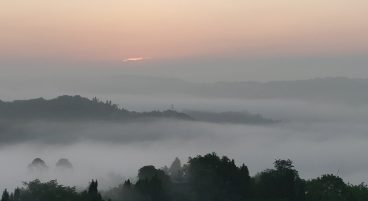 清晨,大足被层层云雾笼罩,阳光冲破云层照射在大地上,城市开始慢慢苏醒。云雾,像鹅绒般轻轻地飘浮着,一栋栋高楼大厦被大雾包裹着。远远看去,整个城市仿佛仙境一般。