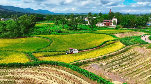 2023年航拍“我的美丽家乡”丨重庆大足:45万亩水稻开镰 田野一派丰收盛景