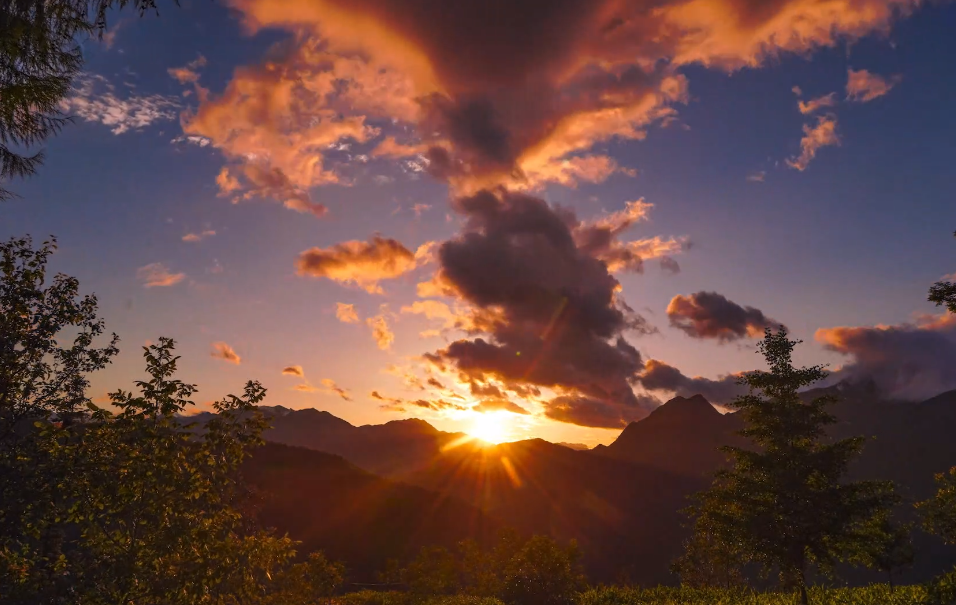 近段时间,记者用延时摄影记录下重庆城口大巴山山脉的晚霞。日暮下,大巴山、霞光交相呼应,蔚为壮观。