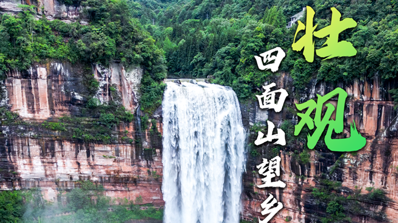四面山望乡台瀑布位于重庆江津四面山景区,瀑布高158米,宽48米,是我国单级落差最高的一挂瀑布,有华夏第一高瀑、中国最美十大瀑布美誉,是全球最大的自然形成的类心形丹霞景观,也被称之为“天下第一心”。