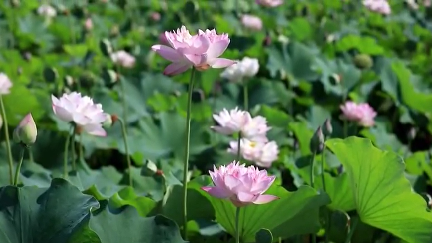 接天莲叶无穷碧,映日荷花别样红。近日,在渝北区木耳镇新乡村花田坝子,100多亩不同品种的荷花竞相开放,成为了一道美丽的风景线。亭亭玉立的荷花竞相绽放,争奇斗艳,为炎炎夏日送来了一股清凉的风。