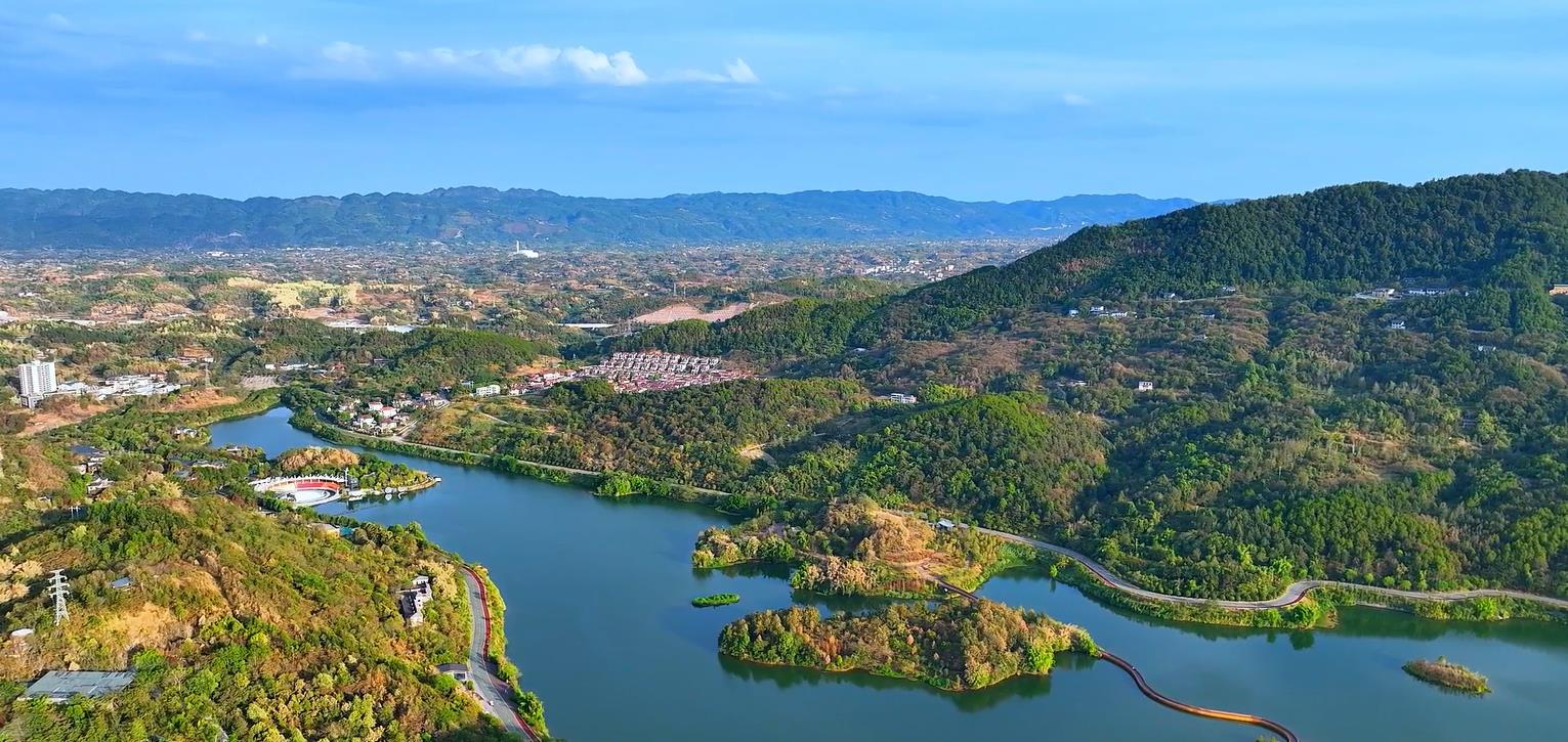 巴岳山起于铜梁玄天湖畔,绵延至大足境内,森林覆盖率超过90%,由35峰组成,横亘30余公里,海拔均高约700米,如汲水卧龙跃跃欲起,山势巍峨,形似一条游动的巨龙,于是巴岳美景被誉为“巴岳游龙”。